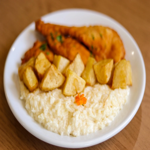 Delicioso peixe linguado na farinha crispy super crocante, acompanhado de arroz de brócolis, molho de camarão & batata... Ver completo