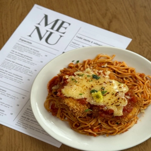 Filé de peixe empanada e frita, finalizando ao molho pomodoro da casa e queijo mussarela.